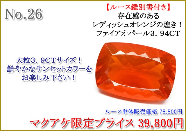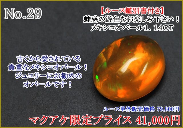 当店では遊色持たないオレンジ色のオパールをファイアオパールと呼んでおりますが、世間では遊色を持つメキシコオパールもファイアオパールと呼ばれる事もあります。