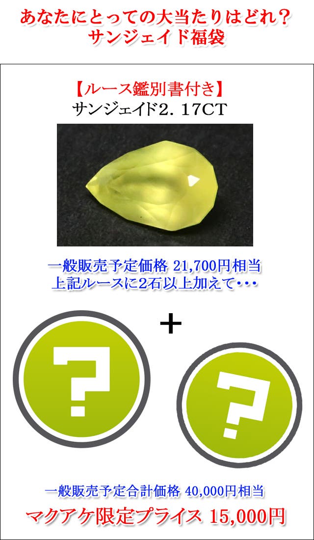 大当たりルース1石に加えて2石以上、合計3石以上のルースをセットでお届け致します。