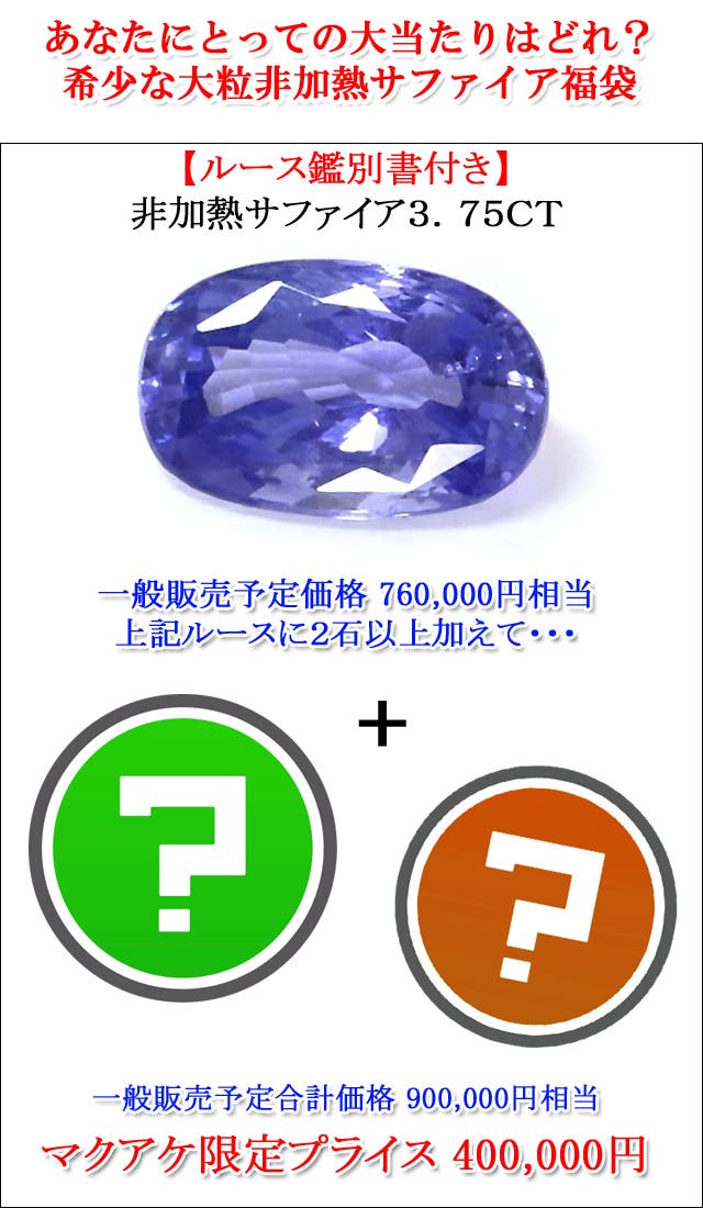 ハズレはございませんのでお目当てのルースがございましたらセレクトして頂き、残りの出来る限り頑張りますのでルースは届くまでのお楽しみ♪