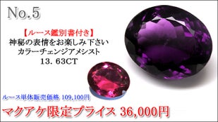 カラーチェンジタイプアメシストとも呼ばれるこのルースは見る光源によって、見た目の色を変化させるアメシストの事を指しています。 主な光源の種類は他のカラーチェンジストーンと同様に暖色光源と呼ばれる物で見ると 赤に近いカラーとなります。成分の具合によって変化の具合が様々で全てのアメシストがこのように変化するわけではありません。アメシストの中でも少し珍しいタイプとなります。