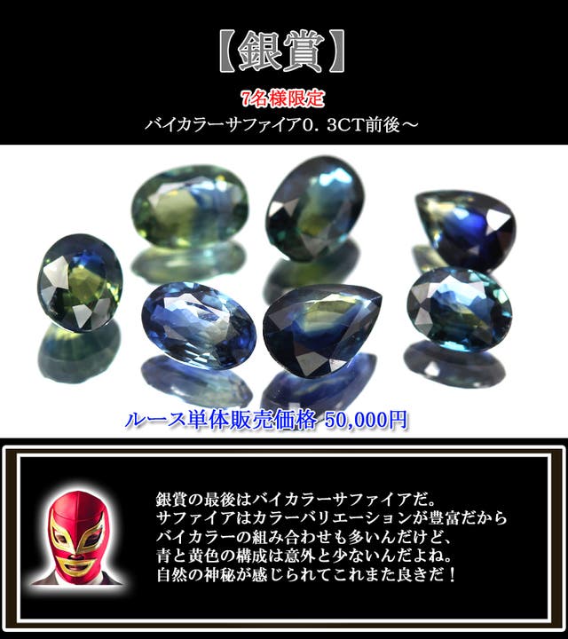 ※All or Nothingの形式となりますので100個すべてのリターンが購入される事によって必ずどれかの宝石が届く仕組となります。