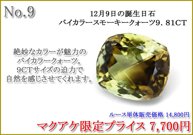 No9.【12月9日の誕生日石】バイカラースモーキークォーツ9.81CT