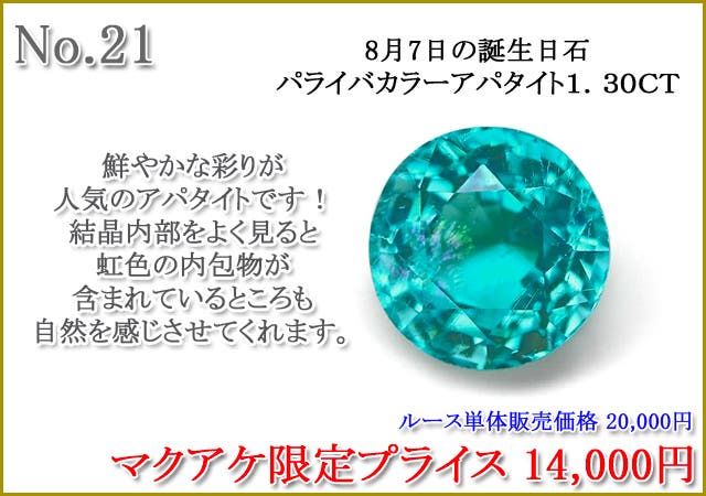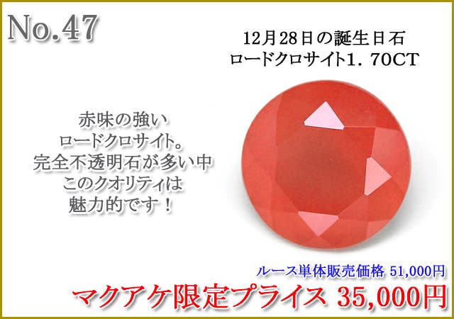 鉱物コレクションとして、ジュエリー加工を目的とした宝石選び、希少石、高品質限定等、様々な収集方法がございます。今回も誕生日石である事に大きな意味はございませんが、「誕生日に該当している宝石があるとなんか嬉しいじゃないですか」と言うところからできた企画となります。