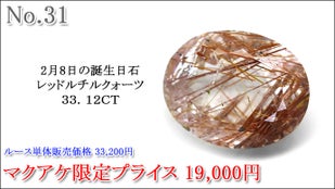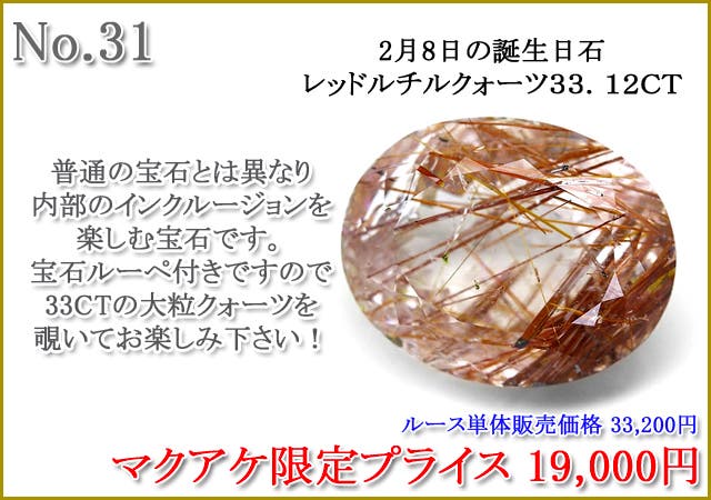 No31.【2月8日の誕生日石】レッドルチルクォーツ33.12CT