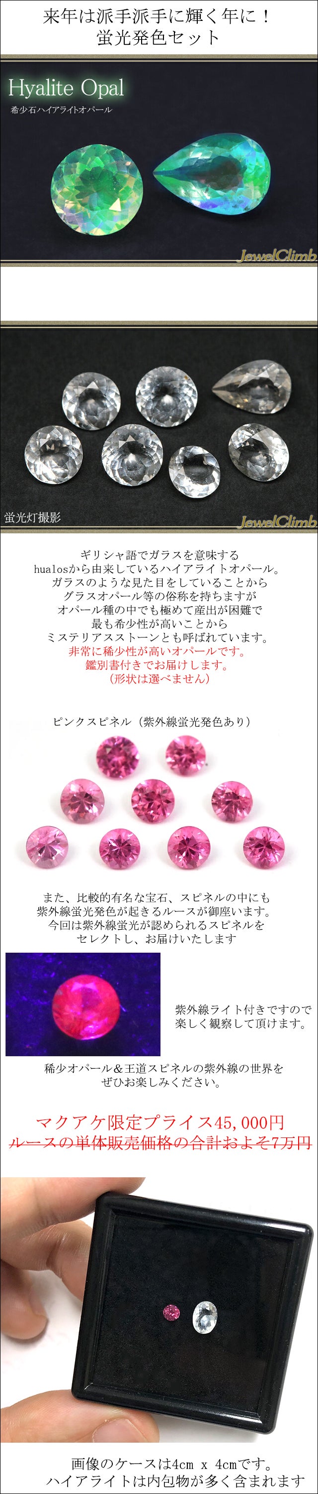 紫外線で光るピンクスピネルと、超注目のハイアライトオパールです。