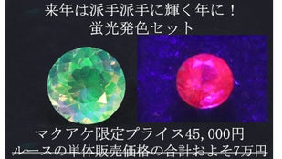 ブラックライト(紫外線)を当てると蛍光発色するストーンを2種セットにいたしました。