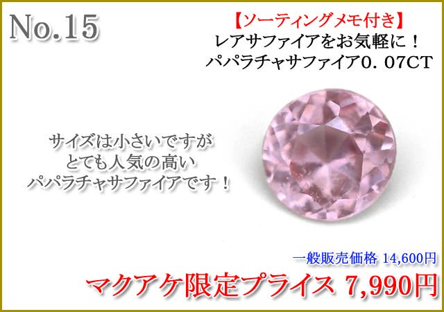 こちらのパパラチャサファイアサイズがとても小さくなります。