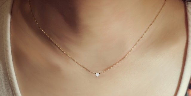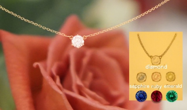 K10ゴールドのプチネックレスを、ダイヤモンド・サファイア・ルビー・エメラルドの4つの宝石からお選び頂けます。