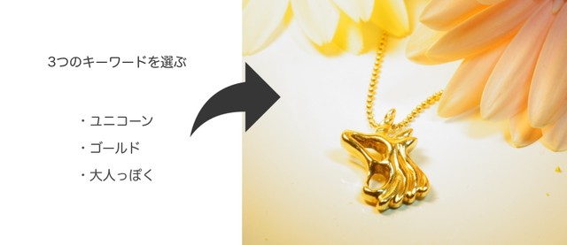 気軽にオーダーメイドジュエリーを体験していただく為、重い浮かんだお好きなキーワードを3つ入力してください。