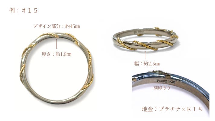・Pt900ベース × K18デザイン + K18ベース × プラチナデザイン(ミックスペア)