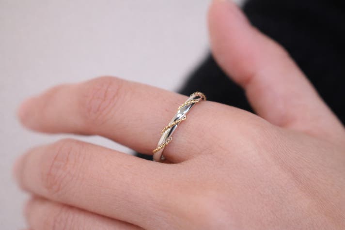 - 地金高の今だからこそ本物を。プラチナ×K18 で仕立てた特別な指輪。