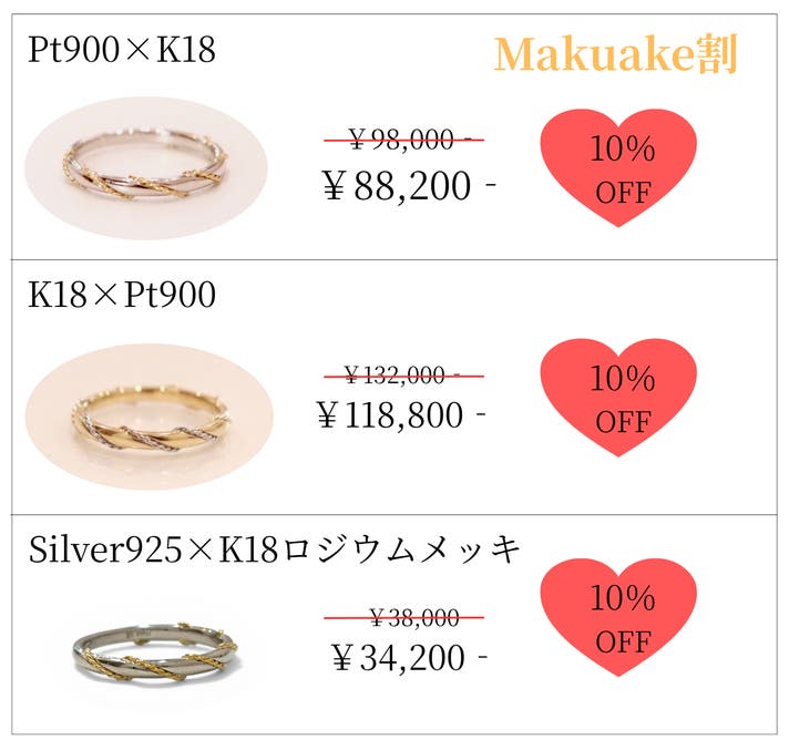 「Makuake(マクアケ)」は、実行者の想いを応援購入によって実現するアタラシイものやサービスのプラットフォームです。このページは、 ファッションカテゴリの 「プラチナ×K18。10年後も好きでいられるツイストリング」プロジェクト詳細ページです。