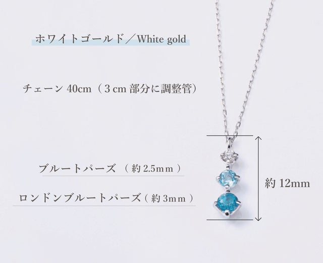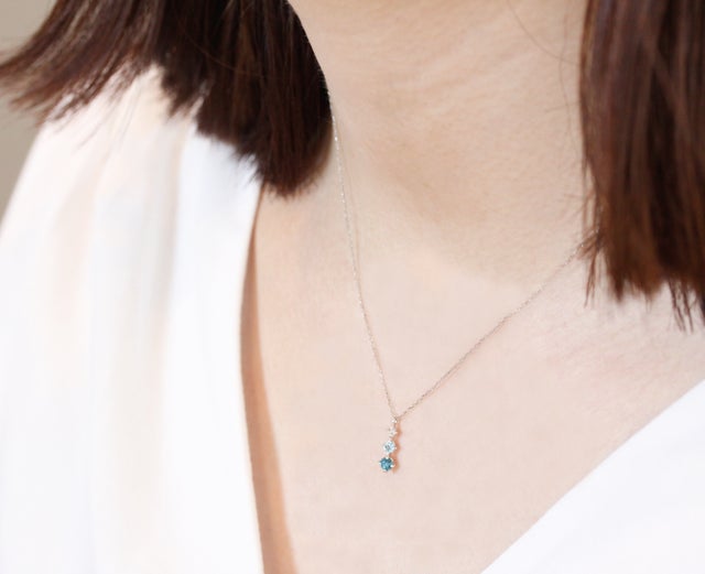 ブルーの天然石が輝くK10ホワイトゴールドネックレス
