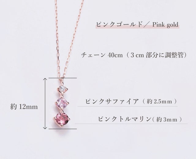 ピンクの天然石が輝くK10ピンクゴールドネックレス