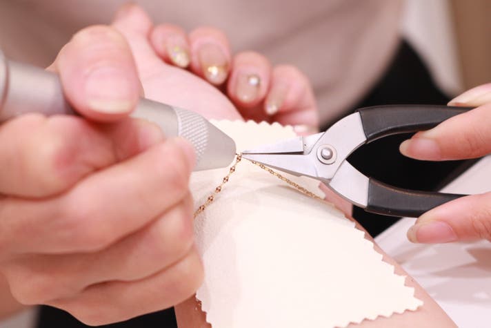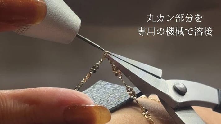 パーマネントジュエリー専門店ならではの技術で、丸カン部分を一点ずつ丁寧に溶接。見た目の繊細さはそのままに、強度と耐久性を高めた“壊れにくい構造”に仕上げました。