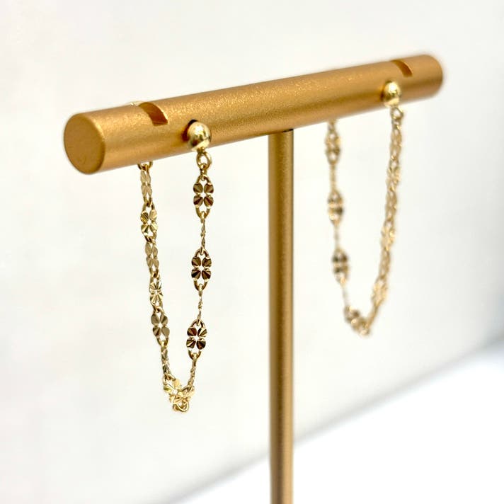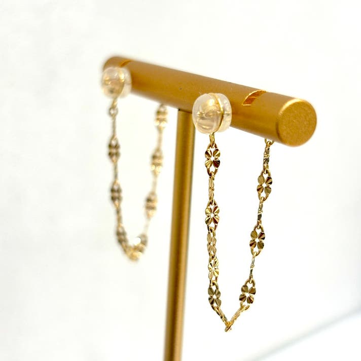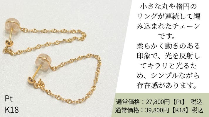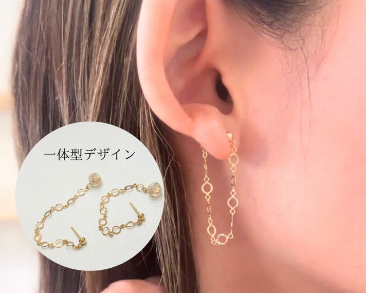 - ポストとキャッチをチェーンでつなげ、後ろ姿まで美しく見せるピアス。