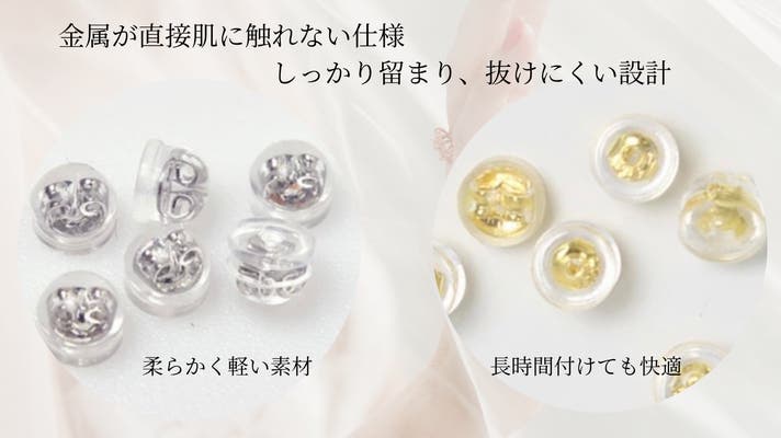 耳元をやさしく包みながら、ジュエリーの美しさを損なわずに身につけられる仕様です。