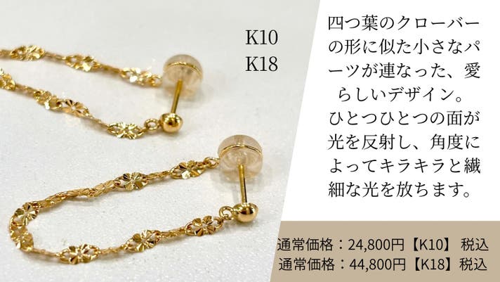 【Makuake割10%OFF】K10 クローバー チェーンフープピアス
