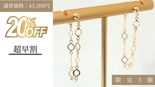【超早割20%OFF】K18 クローバー チェーンフープピアス
