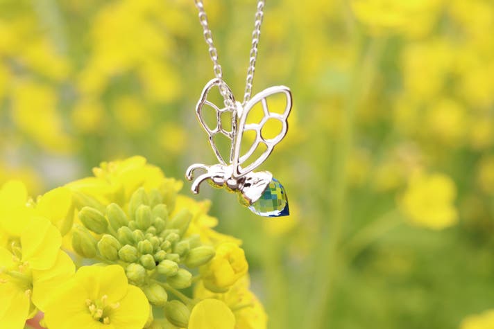 遠くどこまでも広がる「空」に、純潔や誠実な愛情を表すとされる「青」のイメージを重ね合わせて。希望に満ちた旅立ちのジュエリー。