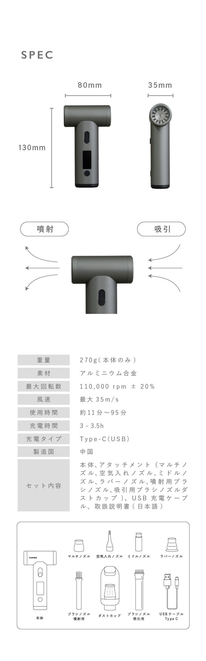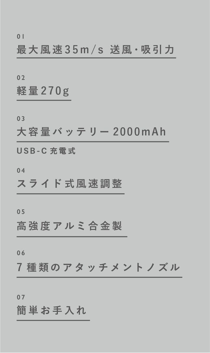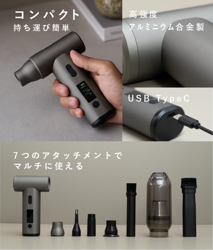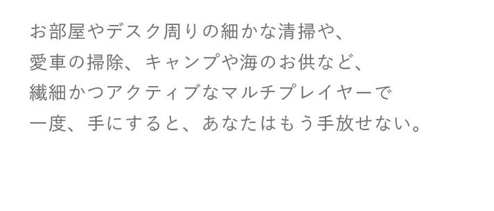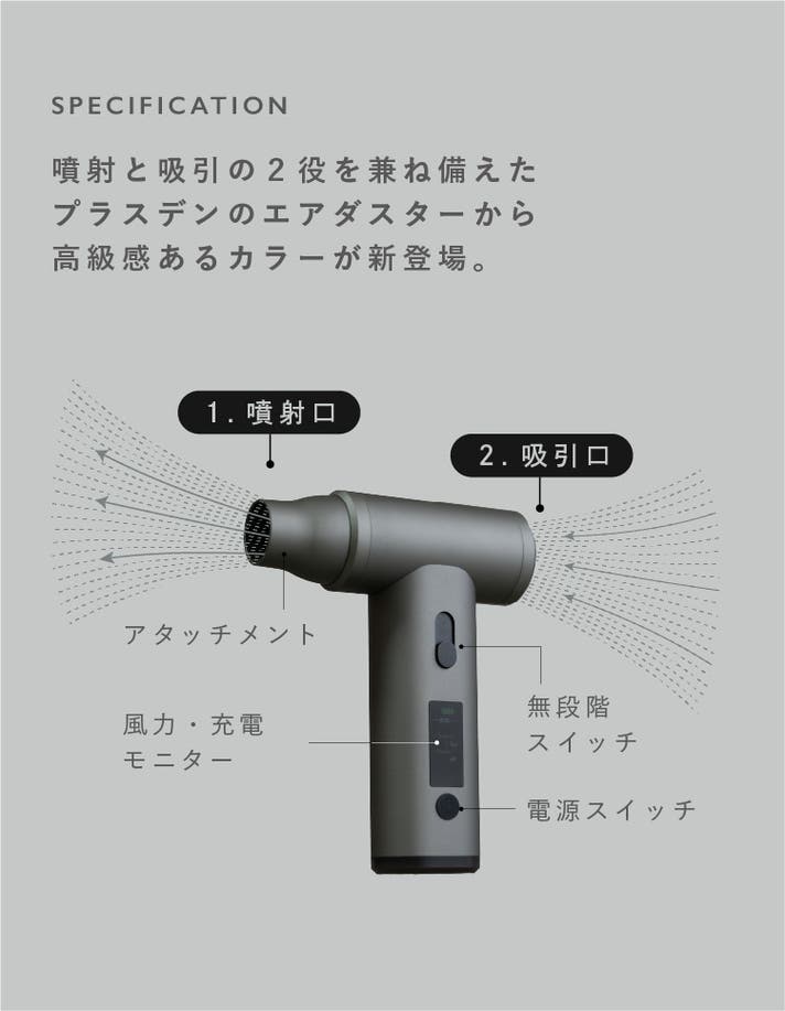 - デスク清掃やアウトドアシーンがより快適に。噴射・吸引の2WAYエアダスター。