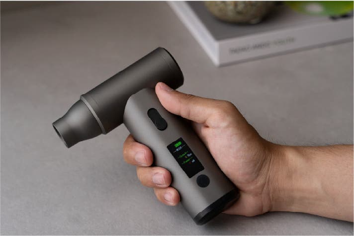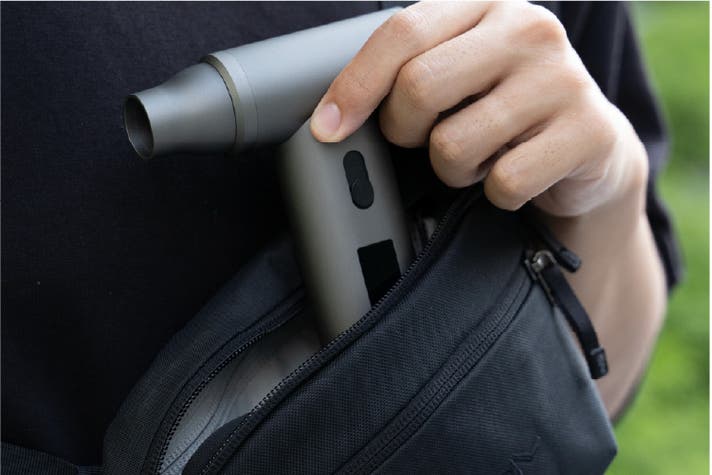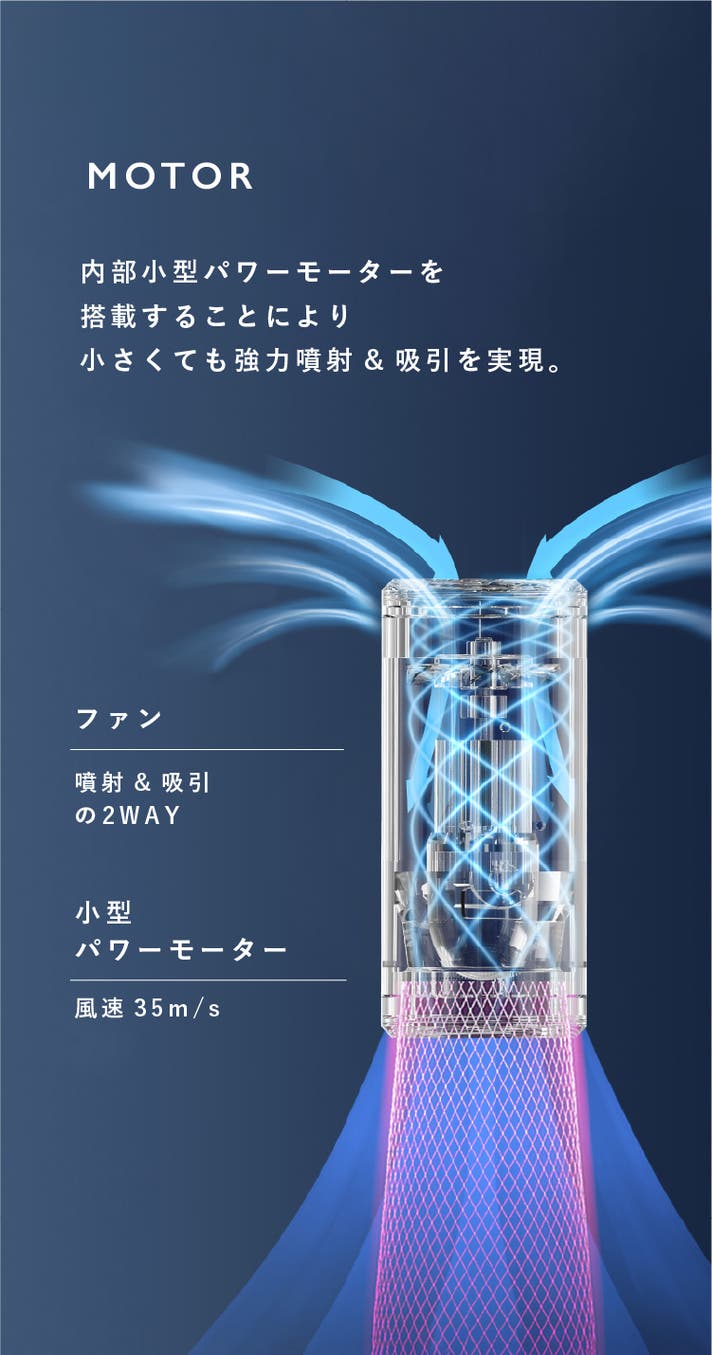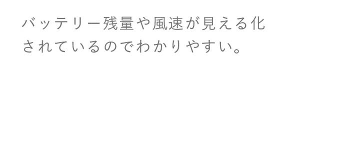 - スマホサイズで風速35m/sハイパワー小型設計。バッテリー残量・風速もモニターで見える化!