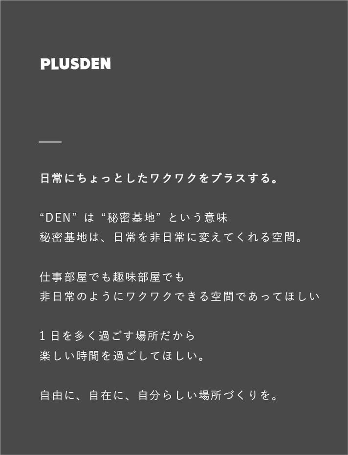 PLUSDENは「 日常にちょっとしたワクワクをプラスする。 」をコンセプト