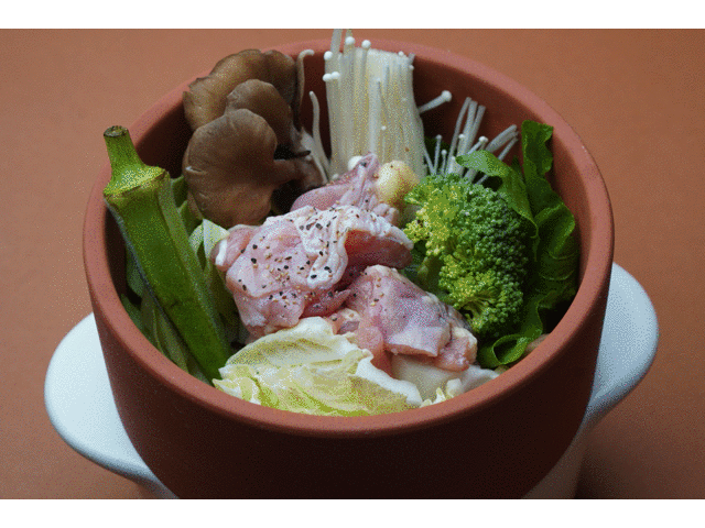 - 蒸気が野菜の食感を残し、旨味を閉じ込め、甘みを引き出す!鍋では味わえない至極の蒸し鍋体験