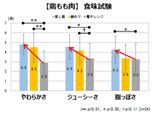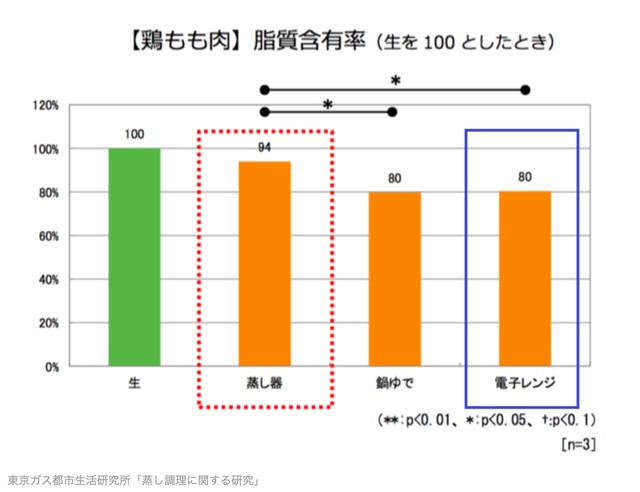 旨味成分やジューシーさや食感を左右する旨味成分を蒸気で閉じ込めることが科学的に実証されています。