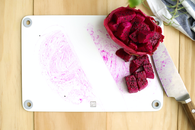 キムチなどをはじめ、色がつく食材を切るのに便利です。