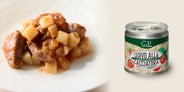 鹿肉を野菜の甘味とトマトの酸味がきいたソースとともに缶詰にすることで、軽くやわらかな食感に。じゃがいもをつけ合わせることで、美味しさとともに、栄養価もさらに高まりました。