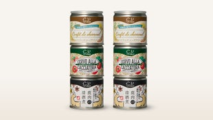 「Confit de chevreuil~柑橘香る鹿肉と大豆のコンフィ~」●名称:鹿肉の調味液漬 ●原材料名:鹿肉(国産)、米油、大豆、レモンピール、食塩、レモン果汁、香辛料/増粘剤(加工デンプン)、重炭酸ナトリウム、(一部に大豆を含む)●固形量:30g ●内容総量:65g ●賞味期限:2027年10月