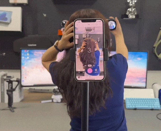 TikTokやYouTubeでのライブ配信中にも、自分の写りやアングルを確認しながら撮影が可能。ケーブル不要で、動きも自由自在です。