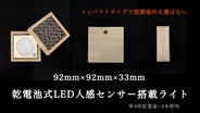 暗い所(10ルクス以下)で人を感知すると自動で点灯し、約15秒で自動消灯する乾電池式LED人感センサーライトを内蔵しています。緻密な日本の伝統文様を彫りぬいた伊勢型と木の温もりを感じるランプとして和洋問わずインテリアにマッチするシンプルな四角いデザインに仕上げました。