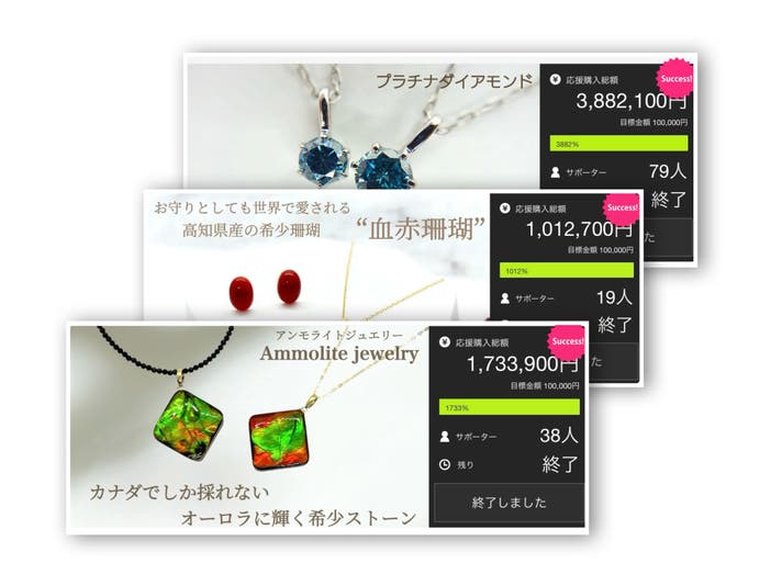 資金の使い道 応援購入いただいた資金は、今後の新しい商品への開発資金や新しい事への挑戦資金にさせて頂きます。 ・宝石展示会等でお返事が遅れる場合がありますので、ご了承ください。 ・商品に関しての感じ方に個人差が予想される商品でございます。そのため、初期不良以外の使用感等に関する返品・返金はお受けいたしかねます。 ・ご注文状況、使用部材の供給状況、製造過程上の都合等により出荷が遅れる場合があります。 ・原則として、発送遅延に伴う応援購入のキャンセルは出来ませんが、リターン配送予定月から3ヶ月を超えた場合には、希望者に限りキャンセルにて応対させて頂きます。 原則として、サポーター都合によるキャンセル・返金は承っておりません。 (サポーター都合のキャンセル不可の例:サイズが合わない、誤注文、長期不在) ◾️対応条件: 商品の初期不良、またはお届けした商品がご注文内容と異なる場合、到着後14日以内にプロジェクトページの「実行者にメッセージ」よりご連絡ください。状況を確認の上、返金対応、または良品との交換対応をさせていただきます。 ◾️返金額: リターン金額(税込)の全額 ◾️返品送料/再送料: 実行者負担 【返品・交換をお受けできない商品】 ・サポーターの責任により破損、汚損が生じた商品 ・使用済みの商品 ・事前にご連絡をいただいていない商品 ・商品到着後、15日以上経過した商品 【交換をお受けできないケース】 ・限定品や同一商品の在庫がない場合など、代替品をご用意できない商品