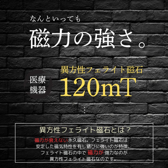- 88個の異方性フェライト磁石が様々な角度からアプローチ、装着部のコリ・血行が改善されます。