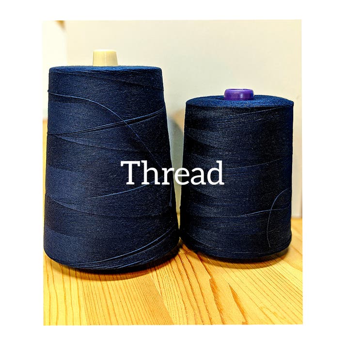 表面は綿で中心部はポリエステルでできた糸を使っています。表面の雰囲気や色落ちは天然素材で強度は強いのが特徴です。