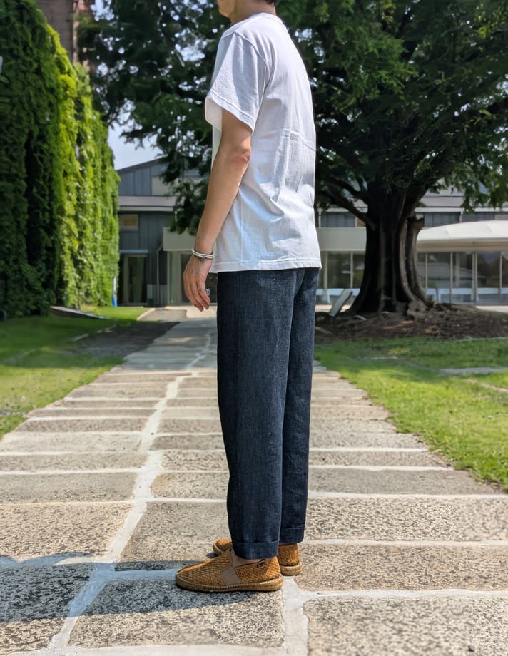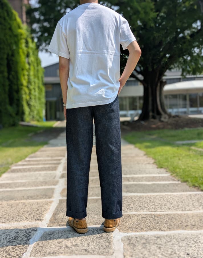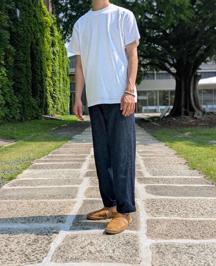 一般的に履かれているデニムは13oz(オンス)の重さに対して、6oz(オンス)と半分以上軽い生地になります。