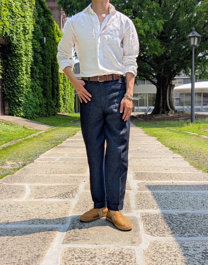 カジュアルにセンタープレスを入れないで履いたり、洗いざらしで履いたり、お好みで楽しんで頂ければと思います。