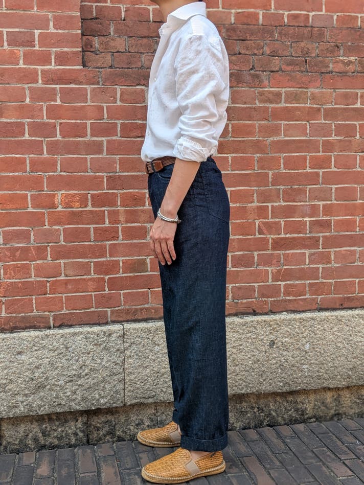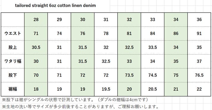 ※コットンリネンのデニム生地なので、洗いによって多少縮みに差がでますのでご理解お願い致します。