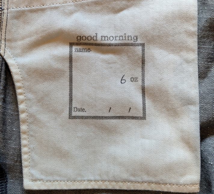 ポケットの裏側には、履き始めた日付が記入できるようにスタンプが押してあります。