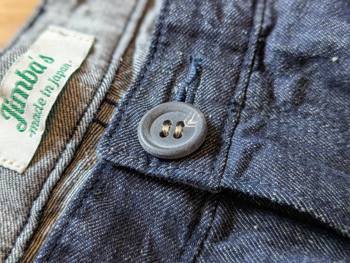 フロントボタンはマットの本水牛ボタンを使うことで、経年変化を楽しめ、スラックスに近い雰囲気になります。