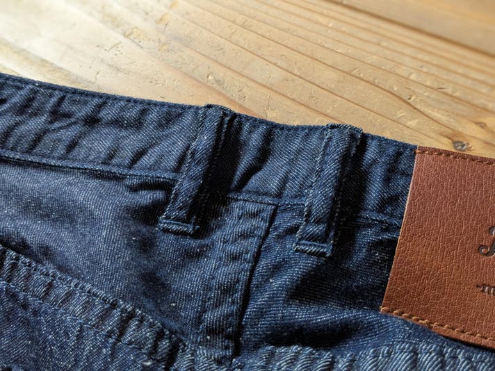 ベルトループはヴィンテージデニムと同じように中高(中心が盛り上がった仕様)にしており、色落ちの陰影が楽しめるようになっています。又、ループを後ろに2本つけることによってベルトを通した時の着用感をアップしてくれます。
