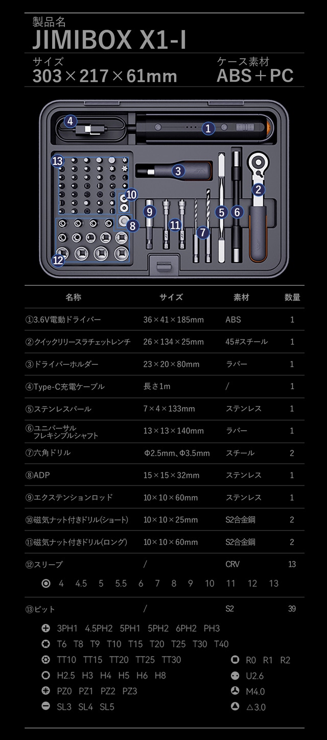 JIMIHOME X1-IはDIYヘビーユーザーにもぴったりな多機能電動&手動ドライバー・ドリル・ラチェットの3in1セットです。
