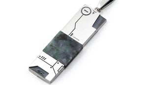 縦長のペンダントトップに翡翠プレートを基調としたコンパクトなサイズ感。