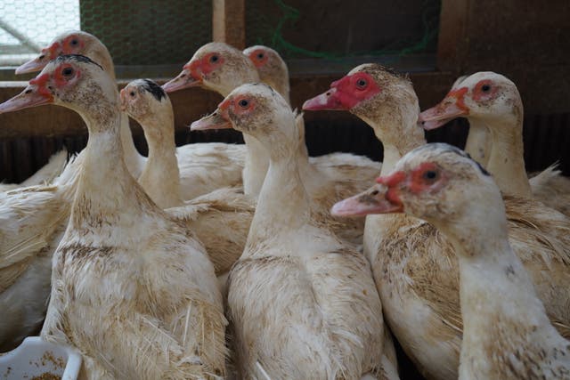 ▲地元の厳選素材を毎日食べて、すくすく育つフランス鴨。人が近寄っても逃げたりしない人懐こい性格