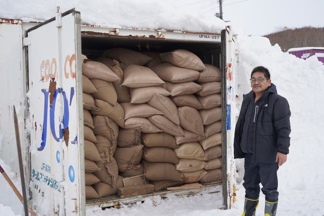 2つめの理由は、そばを雪室で越冬させて、そばの甘みを引き出していること。南さんは60haの広大なそば畑で、寒さに強く倒れにくい品種の「きたわせ」を栽培。毎年6月中旬に播種して9月上旬に収穫、乾燥したそばの実は、倉庫(コンテナ)に入れて寝かせます。