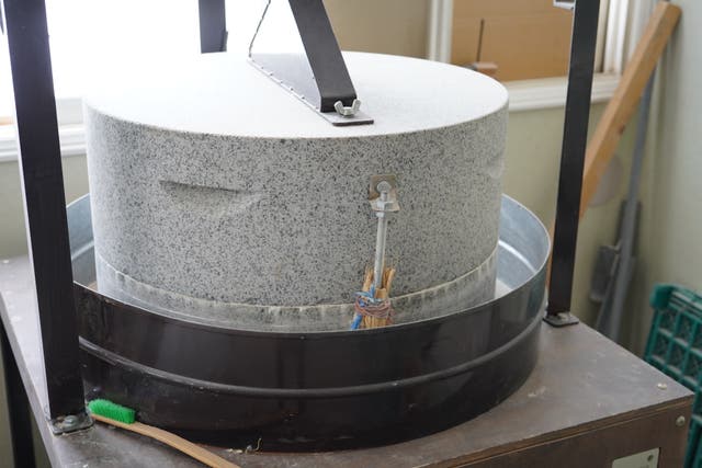 ▲ゆっくり挽くことで、そば粉に水分が留まり、しっとりとしたそば粉に