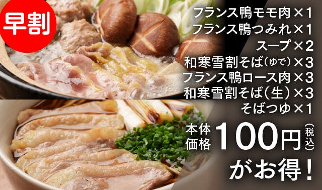 【早割】フランス鴨鍋〆そばセット&フランス鴨そばセット(3人前)