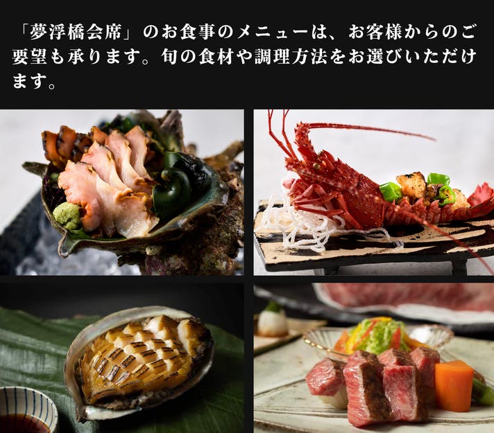 夕食(夢浮橋会席) 魯山人の器を使用した料理を1点ご提供、朝食付き